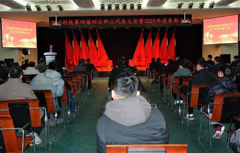 2022年1 月28日,河冶科技四屆四次職工代表大會暨2021年度表彰大會在多功能廳隆重召開。公司黨委書記、董事長楊文義,總經(jīng)理米永旺及黨委委員、助理以上領(lǐng)導(dǎo)、全體中層干部、職工代表、采購營銷人員、部門骨干、列席代表等出席了會議,安泰科技總經(jīng)理畢林生、紀委書記劉建欣通過視頻全程參加會議。