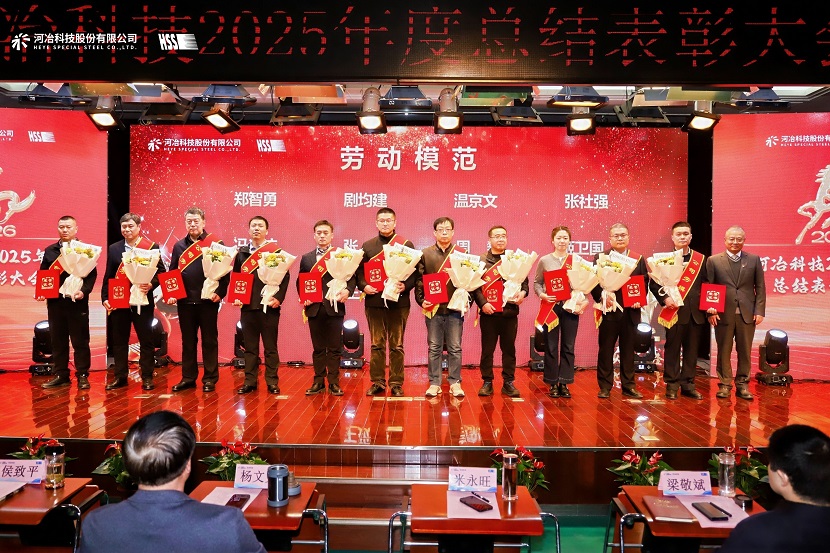 大會的重要環節——2025年度表彰儀式,將現場氣氛推向高潮。2025年作為十四五規劃的收官之年,圓滿交出了高質量發展答卷;2026年恰逢十五五規劃的開局之年,新的征程已然開啟,此番表彰既是對過去奮斗成果的致敬禮,更是對新征程揚帆起航的動員令。河冶科技黨委副書記梁敬斌宣布表彰決定,對在過去一年中表現卓越的先進集體和個人進行了表彰,他們用實際行動詮釋了勞動競賽、勞模精神、工匠精神,是全體員工學習的榜樣。